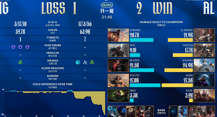 最后的结果,不出所料,AL获胜了,2比1击败了IG,Kael拿到了整局的MVP,妮蔻和洛的发挥,太出色了。但是你还别说,IG还是给到了AL压力,特别是第二把的时候,直接算是被IG碾压了一把,很夸张。当然,最夸张的还是第三把中Rookie的发挥,一手乌鸦,直接带队想要三打五击败AL,确实想太多了,难怪网友们都锐评,Rookie勇气可嘉。接下来一起回顾这轮对决。