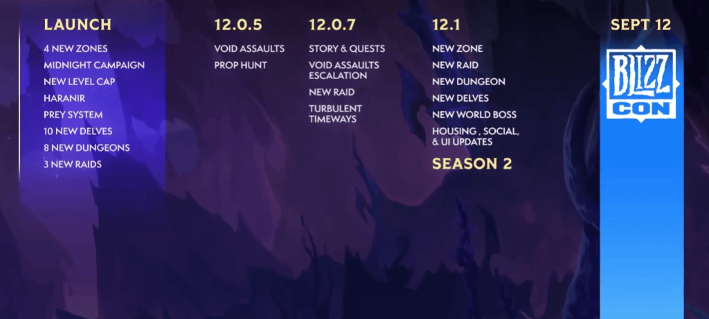 然后是正式服接下来的具体安排,官方明确表示每隔8周就会更新一次,内容包括:新的等级、剧情与新地图。另外,12.0版本将设有3个新团本,分别是巨魔精灵(只有一个BOSS)、虚影尖塔(6个BOSS)以及决战奎尔丹纳斯(2个BOSS)。