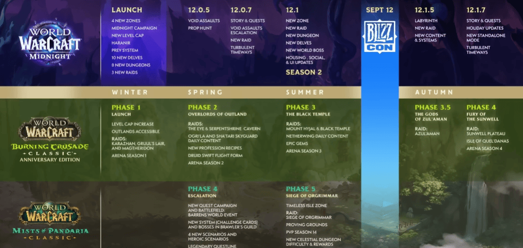 近日,暴雪正式公布《魔兽世界2026年运营计划》,主要包括怀旧服MOP、怀旧服ProMax以及正式服12.0的后续更新。