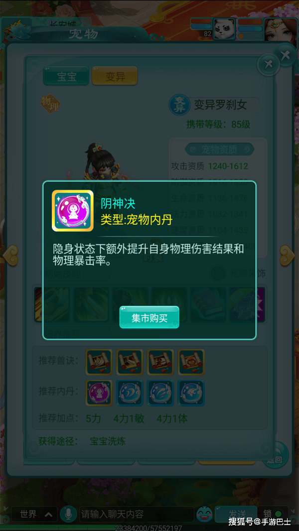 在图鉴信息的最底部,明确标注了每只宠物的具体获取途径,例如“商店购买”、“野外捕捉”等。若为变异宠物,则会注明需要通过“宝宝洗练”来获得。这意味着,一旦你在图鉴中“一见钟情”某只宠物,立刻就能知道该去哪里将它收入麾下。