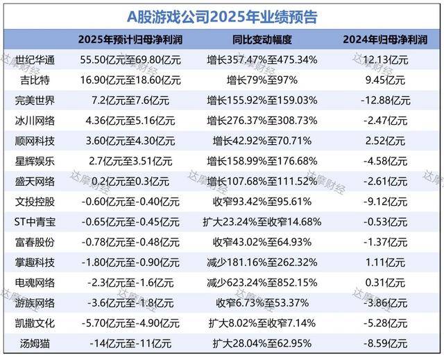 也有部分游戏公司的业绩表现不佳,掌趣科技、电魂网络的业绩预计由盈转亏,其中,电魂网络为上市以来的首次亏损。汤姆猫亏损扩大,2025年,汤姆猫预计亏损额高达11亿元至14亿元。