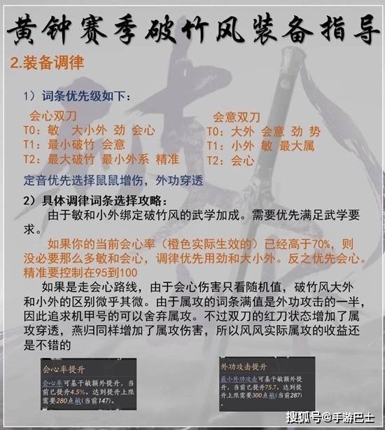 破竹风调律的核心逻辑的是“先保基础面板,再堆伤害词条”,优先保证精准率、会心等基础属性达标,再追求外功、增伤类词条,避免出现“词条堆满但伤害拉胯”的情况,这是毕业调律的核心关键。