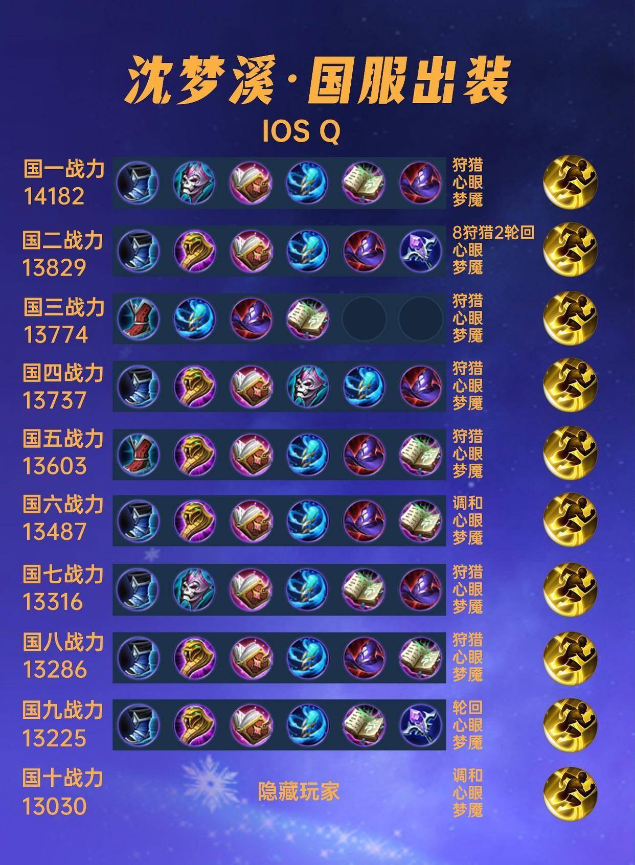 这篇文章我们来看一下40位国服沈梦溪的出装铭文汇总。