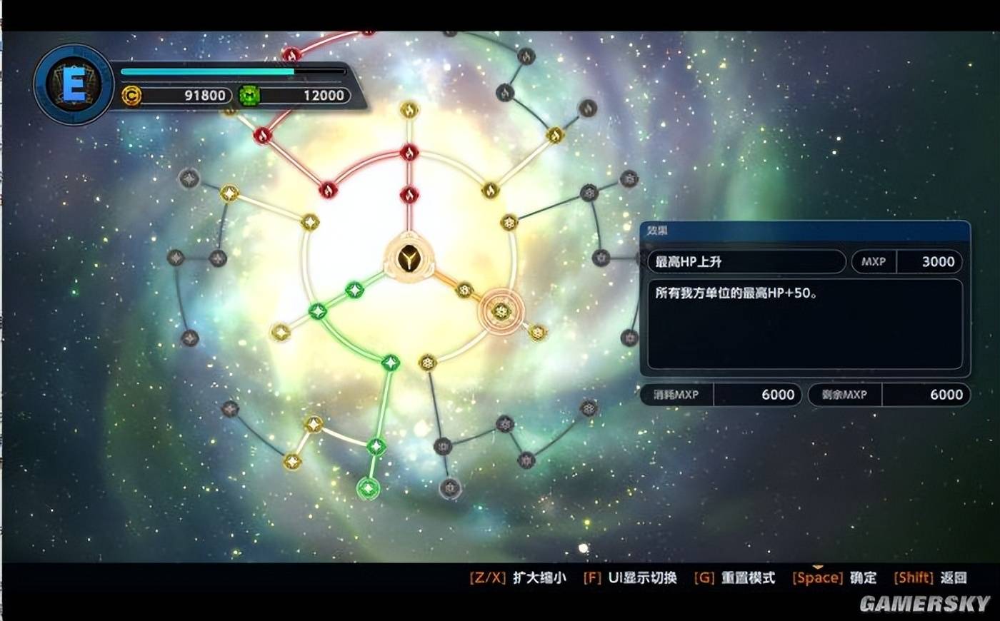 除了辅助连结系统外,《机战Y》另一个新加入的系统就是STG记忆。它可以看作一个银河形状的天赋树。玩家可以用任务通关后获得的任务经验值来提升角色。天赋树上的节点大都是简单粗暴的数值提升,不会给玩家的战斗方式带来本质上的变化。但在高难度下,部分节点提供的宝贵数值能让你的通关之路更顺畅,例如获得更多的经验、精神、气力等等。在《机战Y》成长要素已经如此丰富的情况下,这个并不复杂的天赋树给人的感觉反而恰到好处。