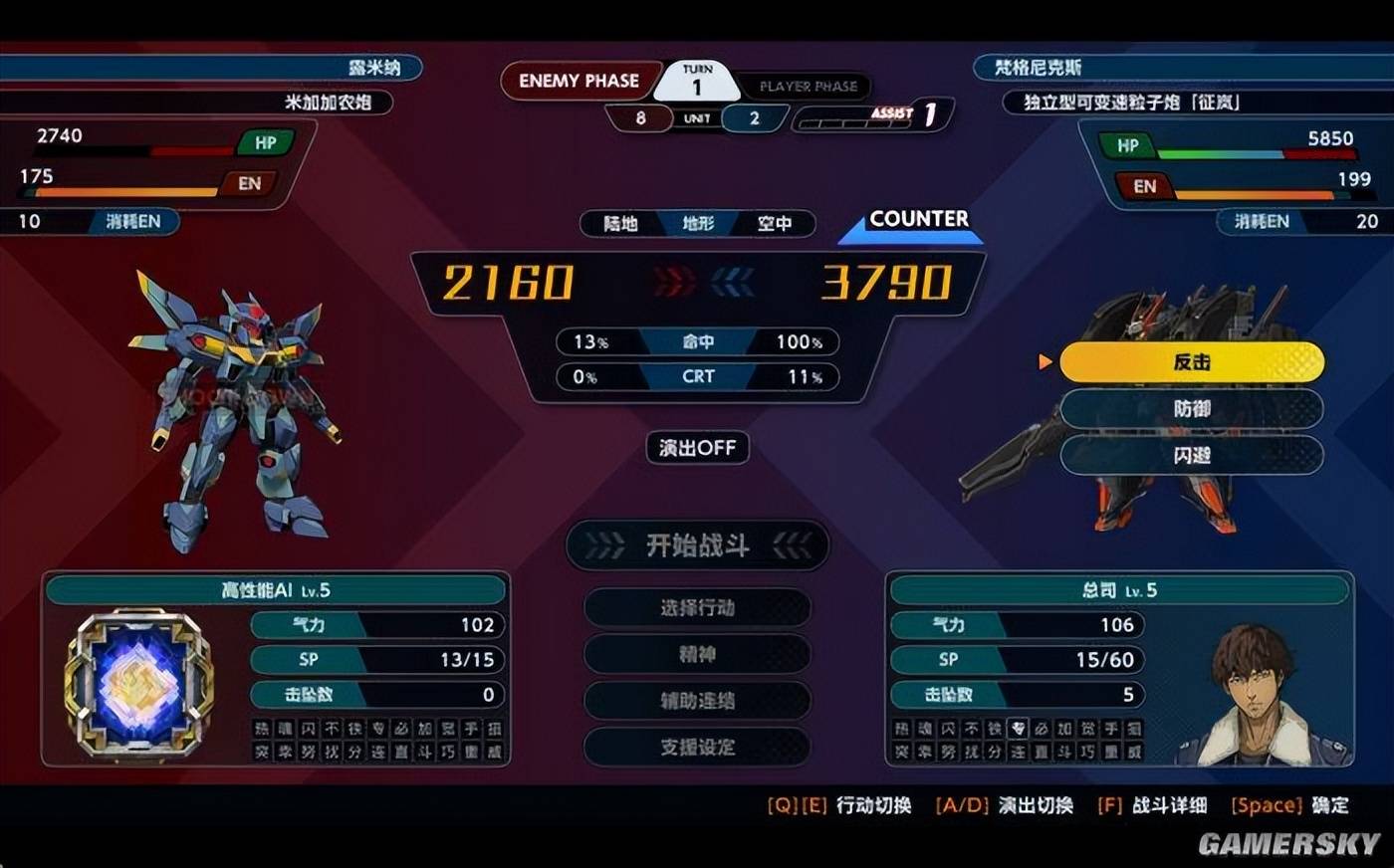 作为一款纯粹的战棋游戏,《机战Y》仍然继承了系列机甲和驾驶员的双重成长和策略维度。除了操控机甲、选择不同的武器进行攻击等动作外,玩家还可以选择合适的时机释放角色的精神指令。获得一些诸如提高命中率、击坠后二动的buff。而受到攻击时,玩家则要在防御、闪避和反击三种策略中进行选择,它们的风险和收益也各不相同。