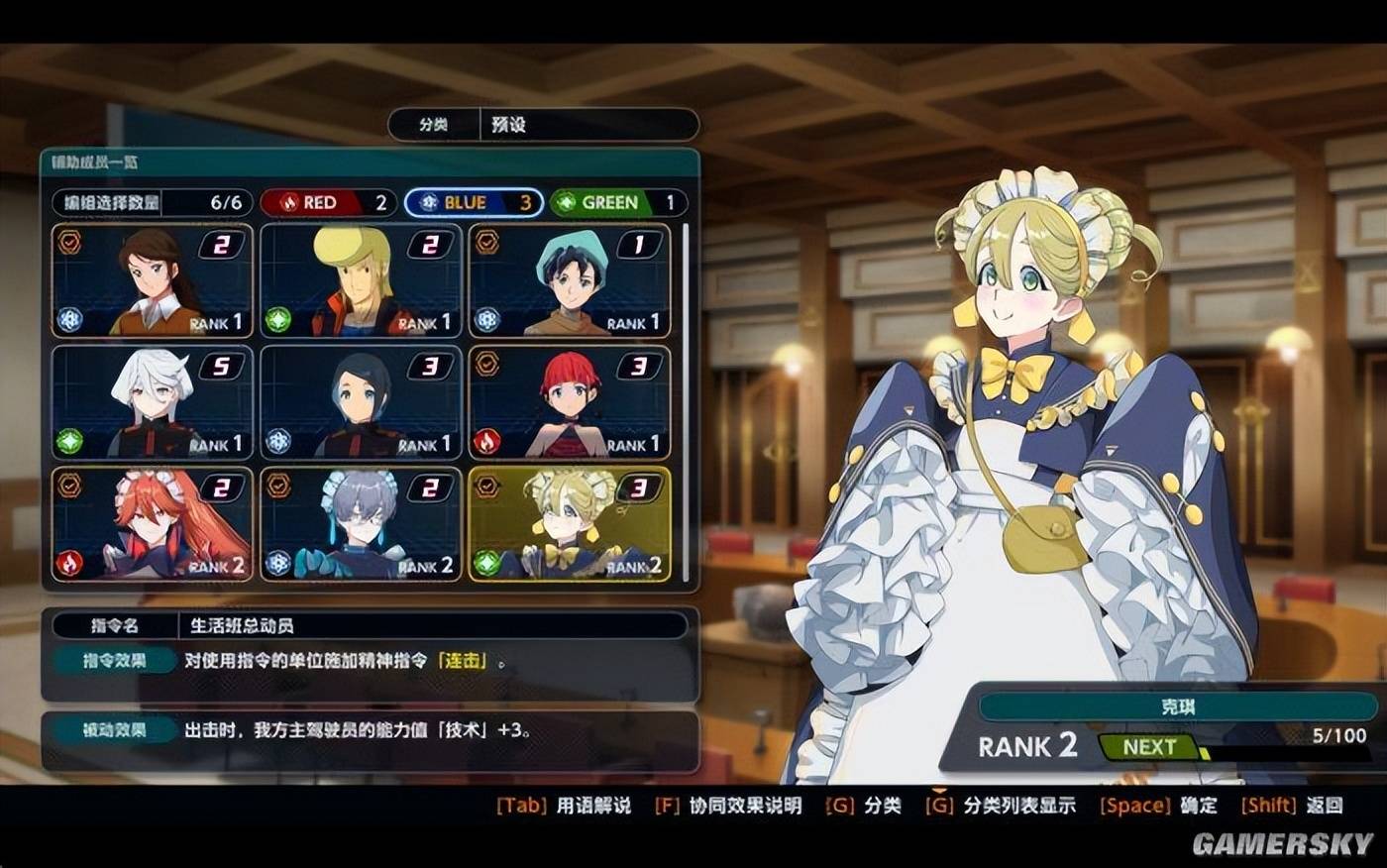 辅助角色根据颜色分为不同的类型,相同颜色的角色编组后还能触发进一步的协同效果。参与任务和使用技能的角色还能获得经验,逐渐提升Rank等级、解锁新的能力。除了让这些配角刷更多存在感外,在战斗前如何搭配出战的机甲和辅助人员,也提升了本作要考虑的策略维度。