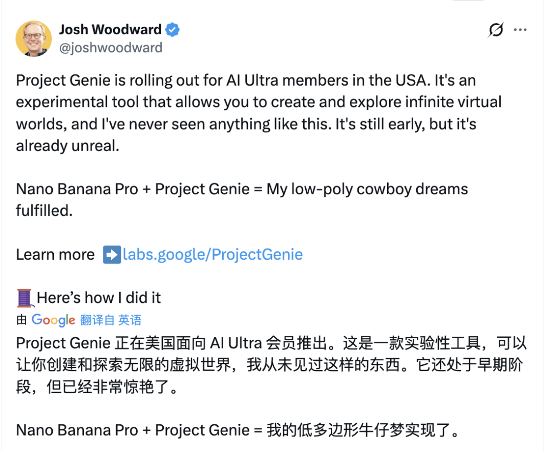 在看网友们的各种神操作之前,咱们先简单捋一下:Project Genie到底是个啥东西。