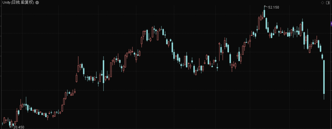 《GTA》开发商Take-Two Interactive缩水10%,在线游戏平台Roblox 下跌了超过12%,最惨的是游戏引擎制造商Unity下跌了21%。
