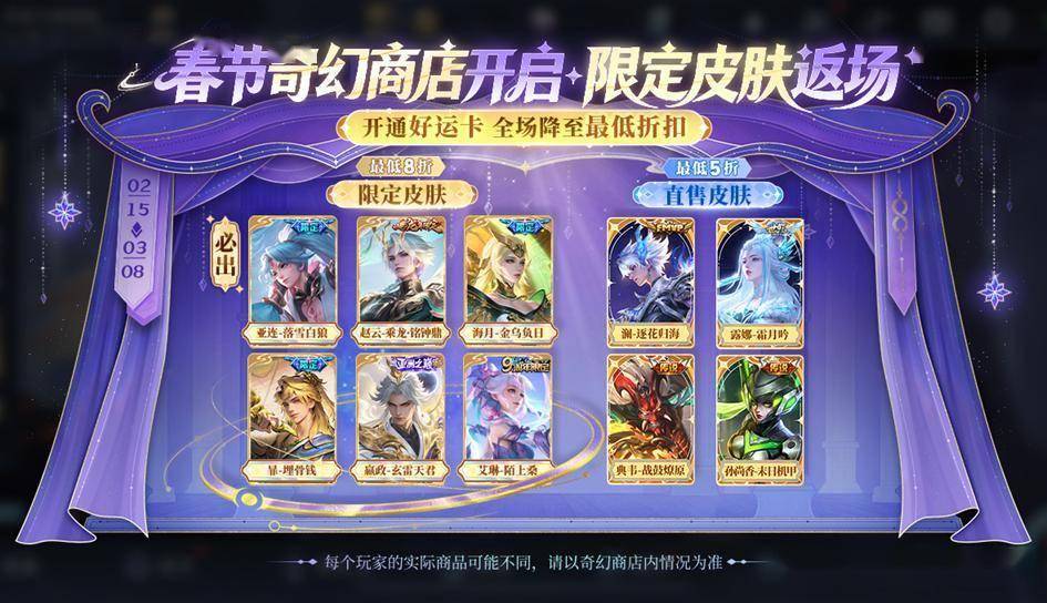 这篇文章我们来盘点一下春节期间已知的会上架的皮肤。