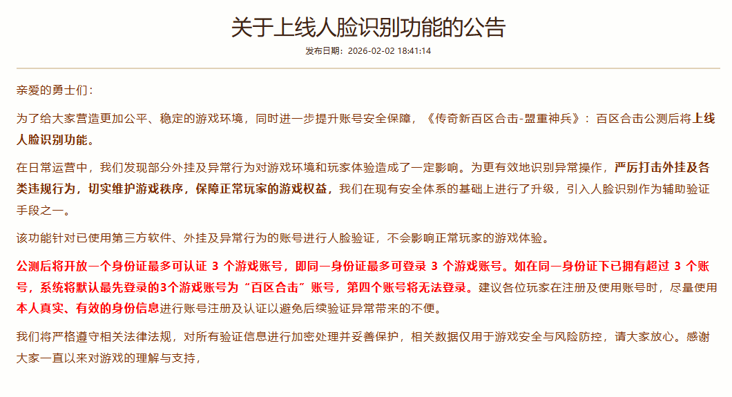另一个利好则来自于环境治理。合击版上线后,迅速启用了人脸识别机制,每个身份证绑定三个账号,大大限制了脚本打金、多开刷资源等异常行为,减少资源囤积和垄断风险,物价波动趋于理性,有助于维持长期收益的稳定性。