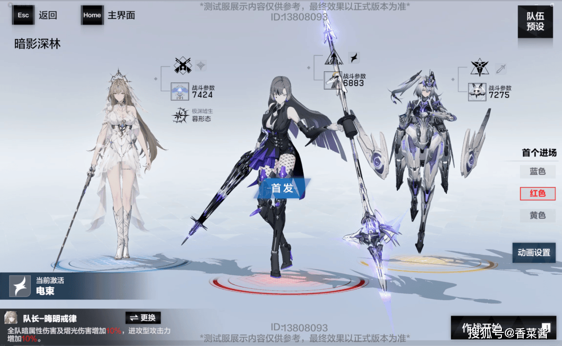 tips:2s极锋若有死线计时,则选择谬影首发→晖暮→极锋的顺序;2s极锋若无死线计时,则选择极锋首发→晖暮→谬影的顺序。