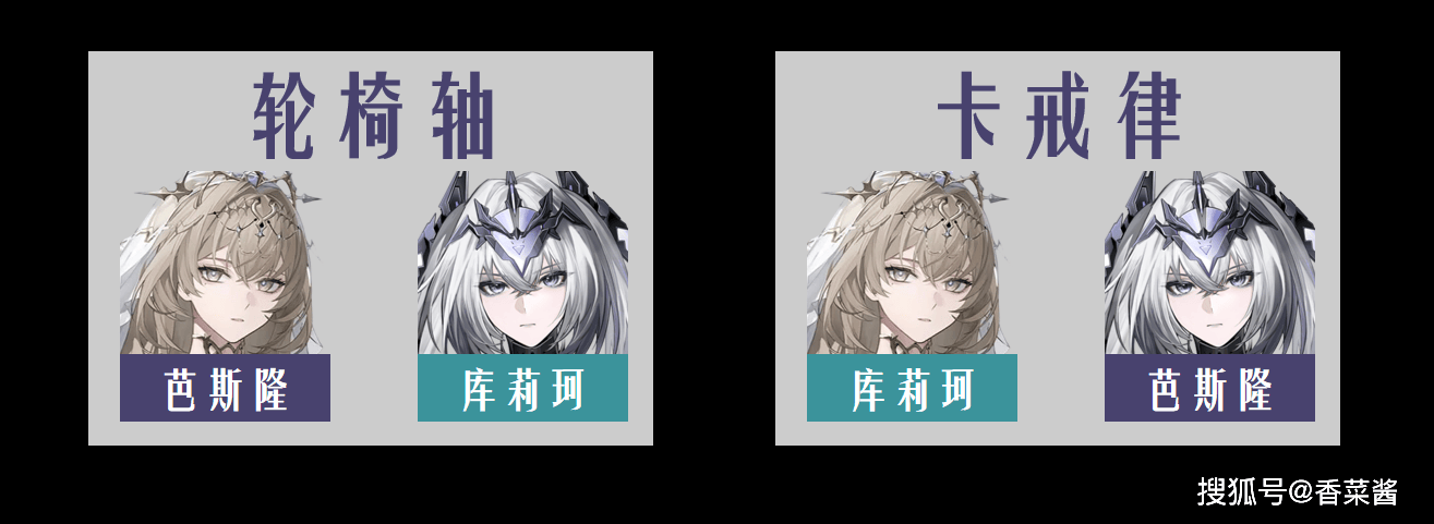 第一种是芭斯隆晖暮,库莉珂极锋,无需卡戒律,属于轮椅轴。适合2s和2s3。