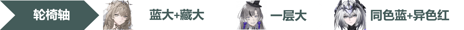 轮椅轴:晖暮蓝大+藏大→谬影一层大→极锋同色蓝or黄+异色红。极锋13s,晖暮11s,谬影4s。