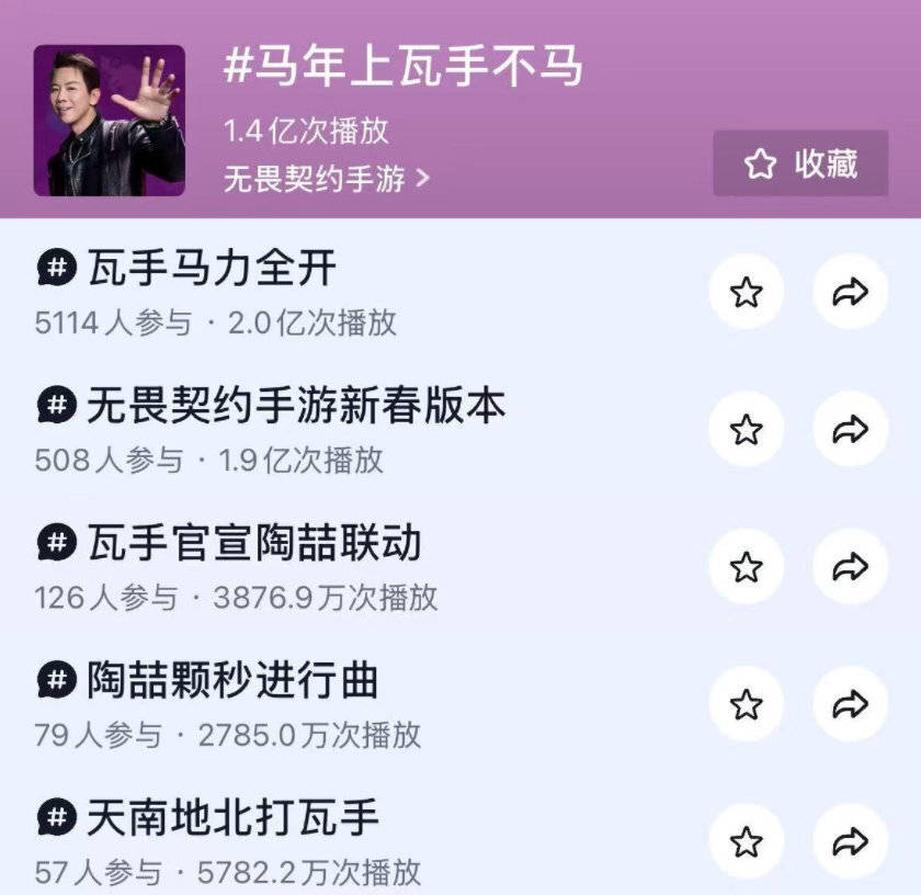 从年前开始,瓦手的春节话题就在各大平台持续发酵,仅抖音平台相关话题播放量就突破6.4亿。