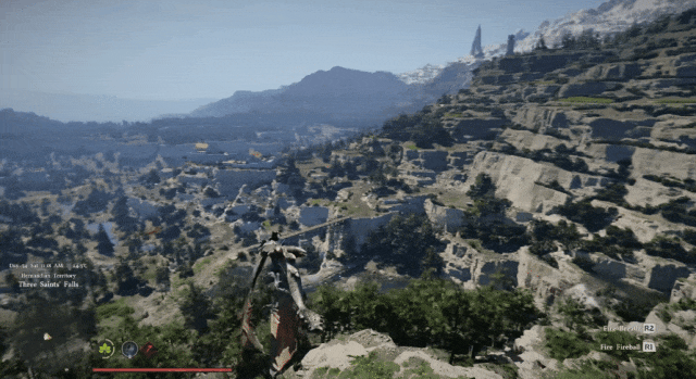 该怎么形容《红色沙漠》的体量呢?用语言描述多少都显得有些苍白,不如我直接在这里贴一张从浮空岛跃下时俯瞰帕卫尔大陆的动图: