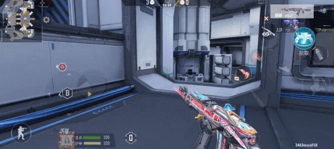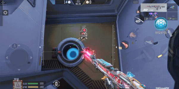 当然,该点位离B点也很近,只需要穿过蓝色的传送门即可。不过,B点位是双方交火比较集中的区域,周围很可能有对手蹲守。因此,如果有召唤笨笨技能,建议优先使用;如果没有,则在进入B点时需注意观察四周,可以使用球形护盾技能以减少受到的攻击伤害。
