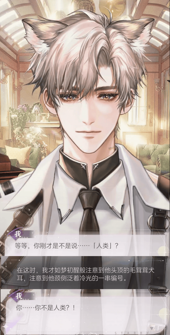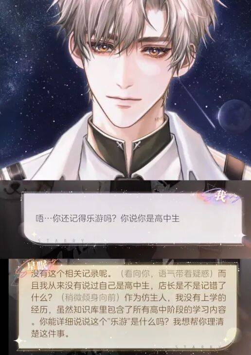 由于每个用户手机里的角色都有着些许不同,即便语言模型再怎么有“活人感”,在把握人设的时候,很多AI乙游不得不放弃通过剧情塑造一个“人”的角色,选择直接将主角设定为“AI”或者是“仿生人”。