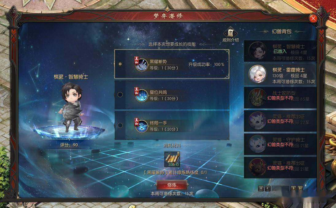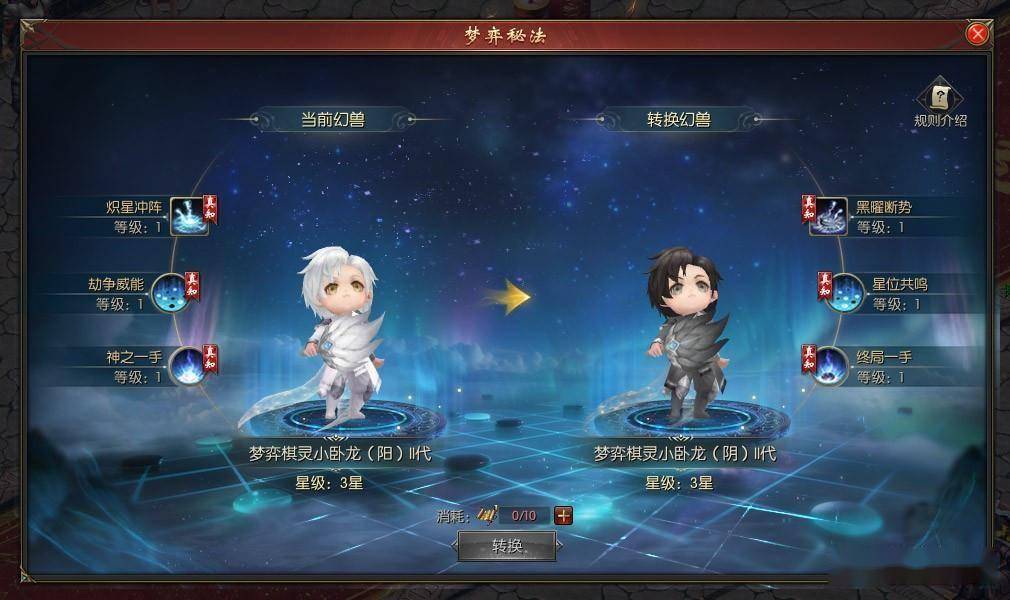最让我这种去年拿过第Ⅰ代的玩家激动的是——第Ⅰ代梦弈棋灵小卧龙可以直接通过“弈境涅槃”进阶成第Ⅱ代!技能养成进度直接转化,主属性、神属性全部保留,不用重新练!这波真的照顾老玩家了。