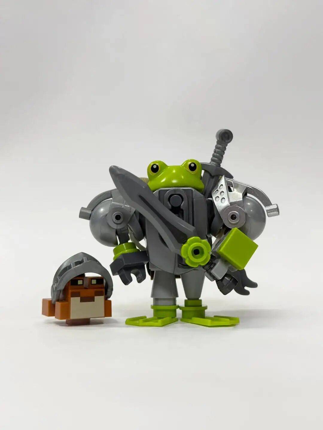 bricksnbeasts 直接放了大招,整出 Billy the Frog Knight。抽抽乐那只青蛙头只是个起点,身体是完全定制的铠甲,还用了一个人仔头盔做成肩甲,夸张得很。彩蛋是 Billy 还带了一只我的世界的青蛙当跟班。