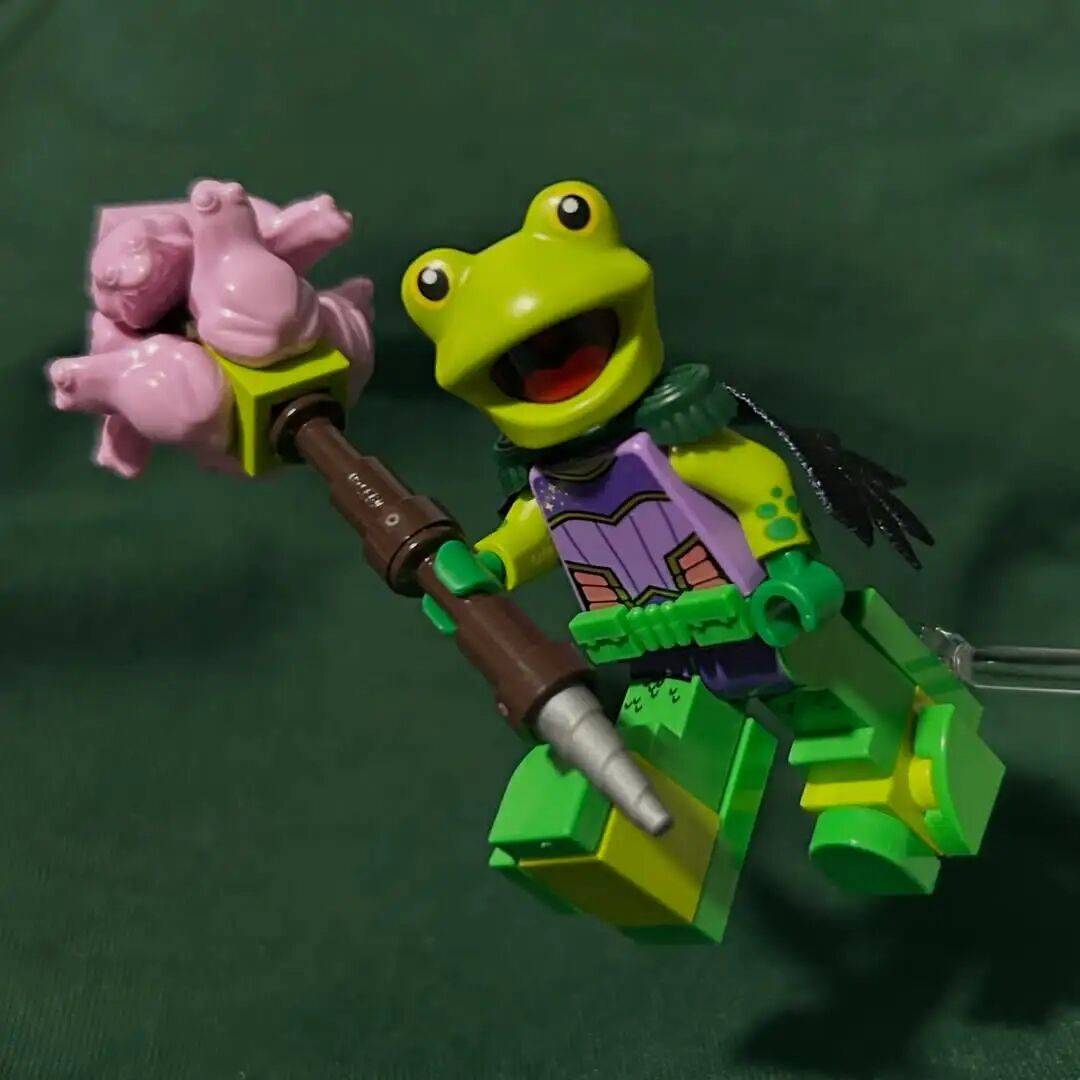 argoniinbricks 从某个平行宇宙拽过来一只“强力雷神蛙”,取名 Throg。严格说他可能不算正统青蛙人,但人家举得起雷神之锤,这就够了——懂的都懂,这是雷神的青蛙皮肤版本。