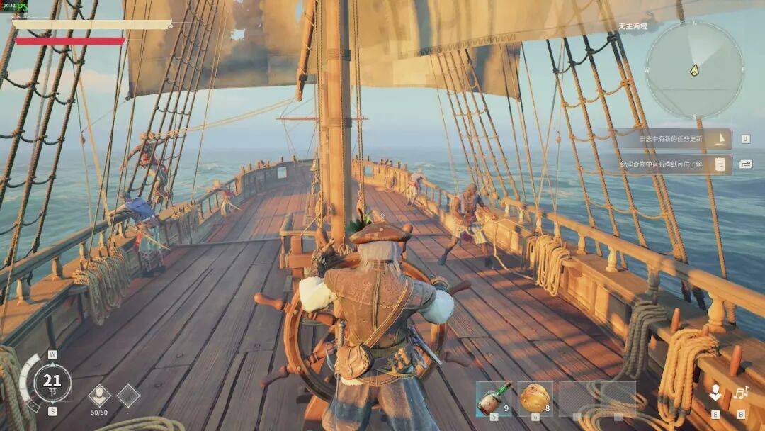 从物理表现上看,游戏对波浪起伏导致的船只倾斜、受风后的航行惯性做了极为细致的处理,这让游戏中的船开起来的确称得上是“真”。但操作起来其实并不复杂,只要简单的WASD即可。