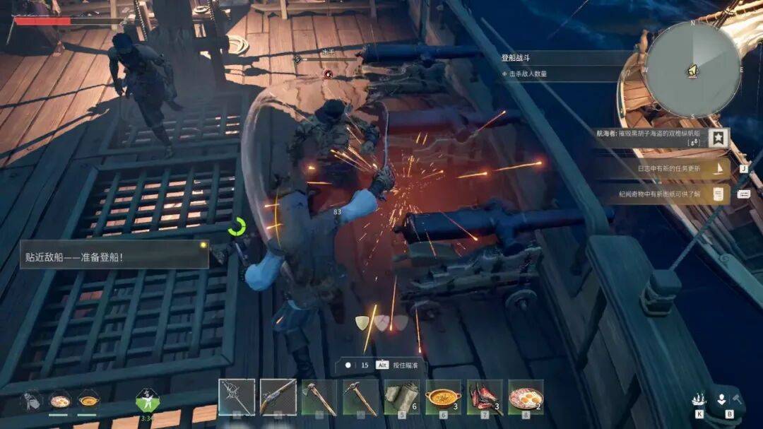 爱尔兰那首经典的《Drunken Sailor》民谣也会唤起不少人当年开着“寒鸦号”驰骋大海的回忆。这种飞跃式的体验升级,让游戏的中期令人眼前一亮,砍树的动力都多了几分。