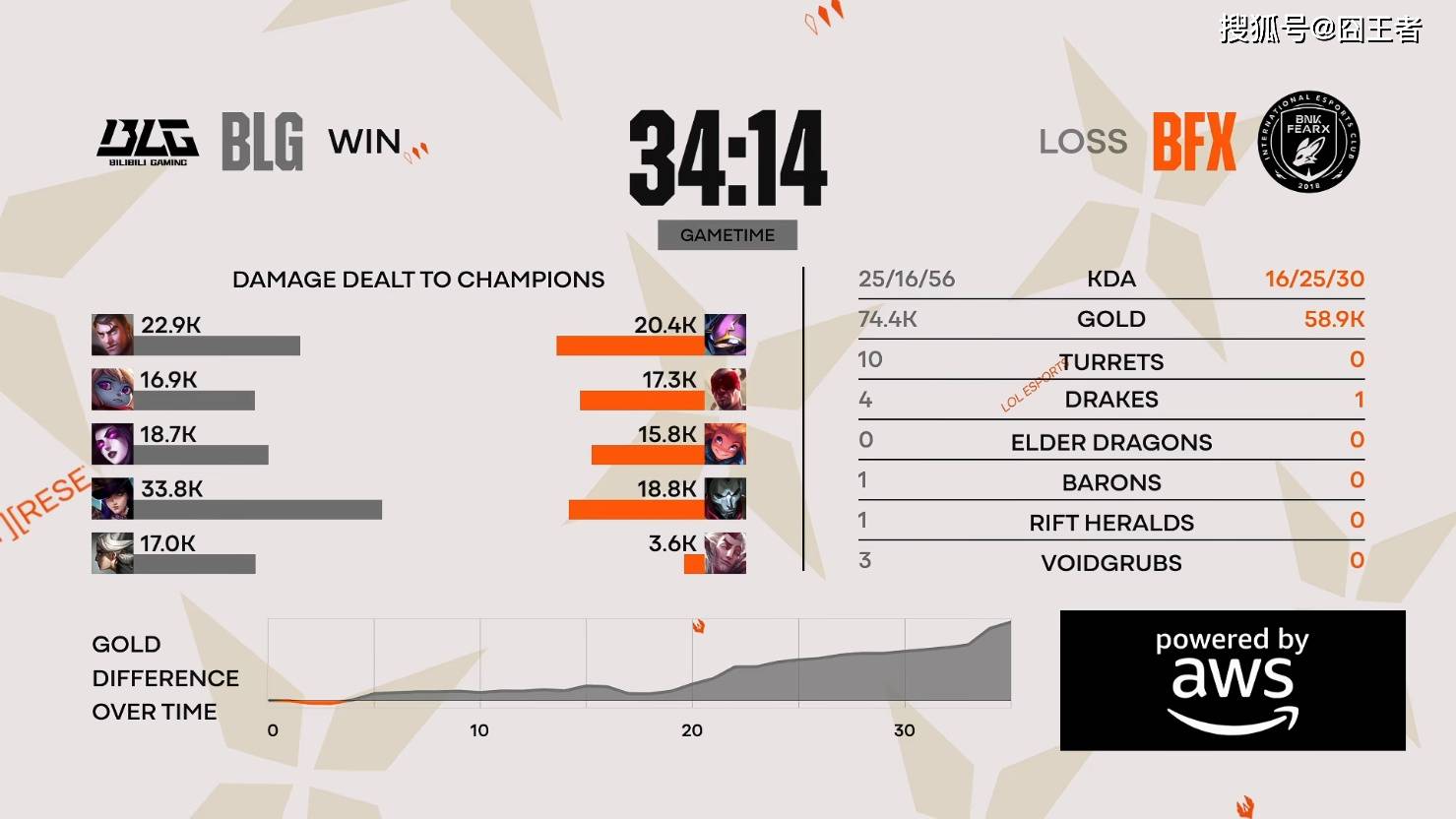 结果第一局比赛,BLG打成了单方面打碾压局。比赛前期 ,knight瑞兹两度对位单杀,Bin贾克斯单杀Clear安蓓萨,BLG前期迅速取得优势;比赛第 15分钟,BLG下路团强势打出1换5团灭BFX,此后BLG将经济差距拉开到6k;比赛第 20分钟,Bin贾克斯统治团战,BLG再度打出1换5团灭BFX;比赛第 27分钟,Bin贾克斯双杀帮助BLG一波打出1换2拿下大龙;比赛第 28分钟,Bin贾克斯超神帮助BLG一波打出0换3后顺势结束比赛。