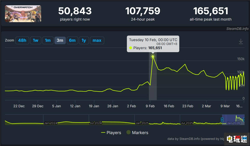 《守望先锋》在2月6日发布活动中正式宣布去掉“2”回归本心,同时在2月11日的第一赛季一口气推出5位新英雄,这直接点燃了玩家的热情。Steam的玩家在线峰值也达到了16.5万,远超《守望先锋2》登陆Steam的首发纪录。