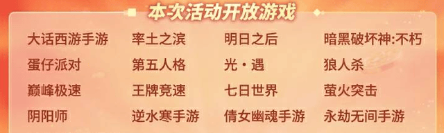 本次活动除了《蛋仔派对》外,还有《率土之滨》、《第五人格》、《逆水寒手游》等一系列热门游戏大家可以选择任意一款游戏来参与活动。