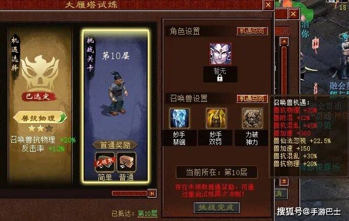 每层通关后,玩家将面临3种机遇选择,每种机遇都能为角色或召唤兽带来不同的属性提升。