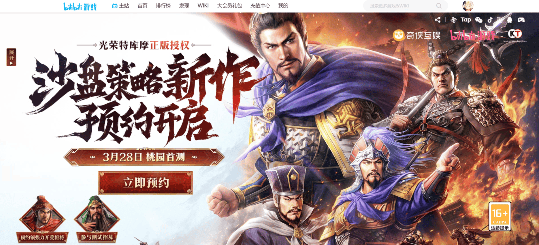但B站近两年奇招有点多,不能按传统思维来评估,况且近两年三国题材游戏多,但三国志这些经典IP露面却不多……那么《三国志:王道天下》这张牌有什么魔力,能让B站在这时候加注?
