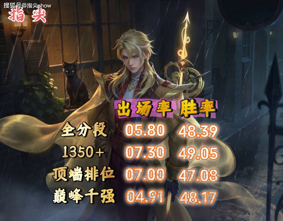 如今他在高端局登场率不高,胜率也不太好看,虽然比甄姬强了一点,但国服战力比甄姬低了不少。