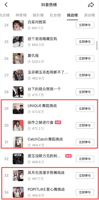 放眼望去,商场里的舞室如雨后春笋一般涌出来,各地的“随舞”已经成为了定式活动,短视频平台上每日更新的热门榜单都不缺各类舞蹈挑战。