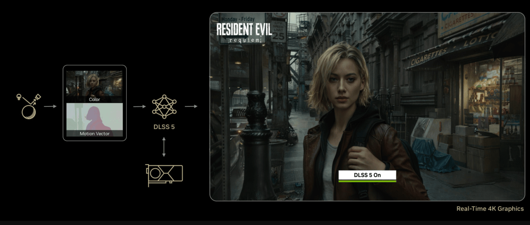 DLSS 5则跨出了一大步。它不再满足于放大像素,而是用生成式 AI“注入”光影和材质。