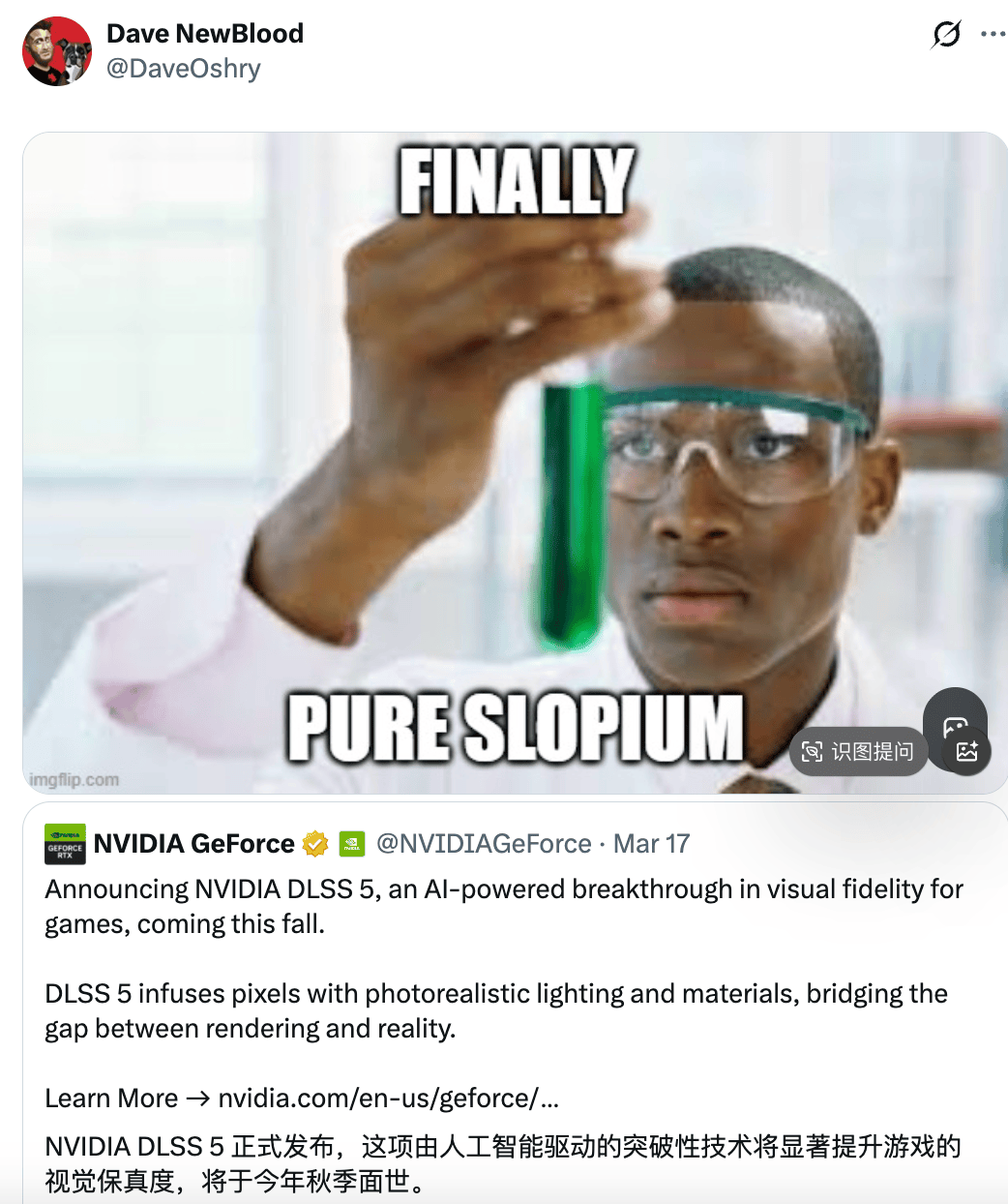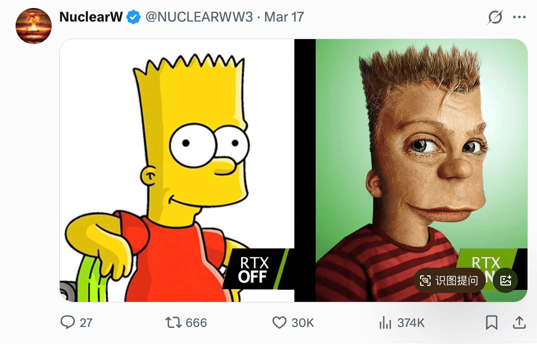 原因是周一英伟达刚发布新一代图形技术DLSS 5,本该是一次“性能革命”,结果却遭到了游戏圈集体抵制。