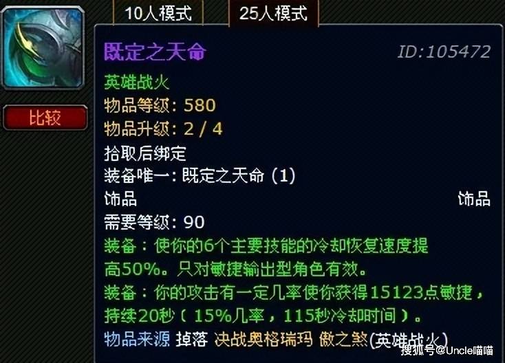 决战奥格瑞玛掉落的既定之天命,是一件改变职业玩法的饰品。它的特效是缩短技能冷却时间,让职业的循环发生了翻天覆地的变化。它的存在,见证了魔兽装备设计的创新与突破。也毫无疑问是天命级的最恐怖如斯饰品!那么最后的灵魂拷问强势袭来,印刻在你骨子里的超级饰品又是哪一个呢?我们评论区见!