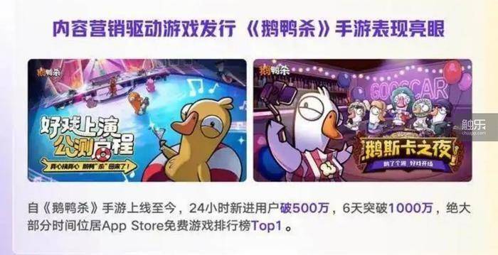 2026年初,虎牙发行的首款作品《鹅鸭杀》取得了亮眼成绩。游戏上线24小时内新进用户突破500万,6天内超过1000万,长期位居iOS免费游戏榜第1名。