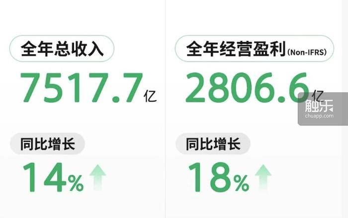 2025年全年腾讯实现营收7517.7亿元,同比增长14%
