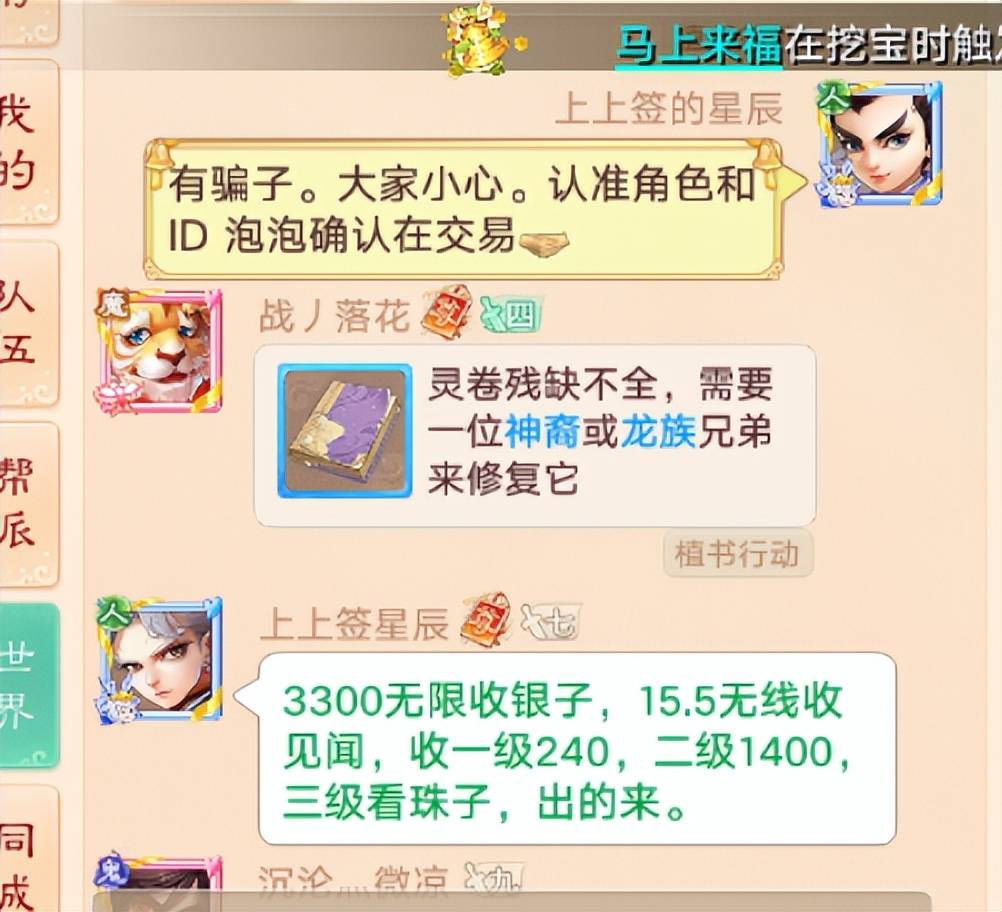 大话西游手游摆摊是一大特色,但也有骗子会利用虚假宣传摊位,比如喊着“高价收残券”,可实际收购价却低得离谱。新手玩家如果不仔细查看,少零之类的价格很容易就会被坑,把物品以低价卖给骗子。