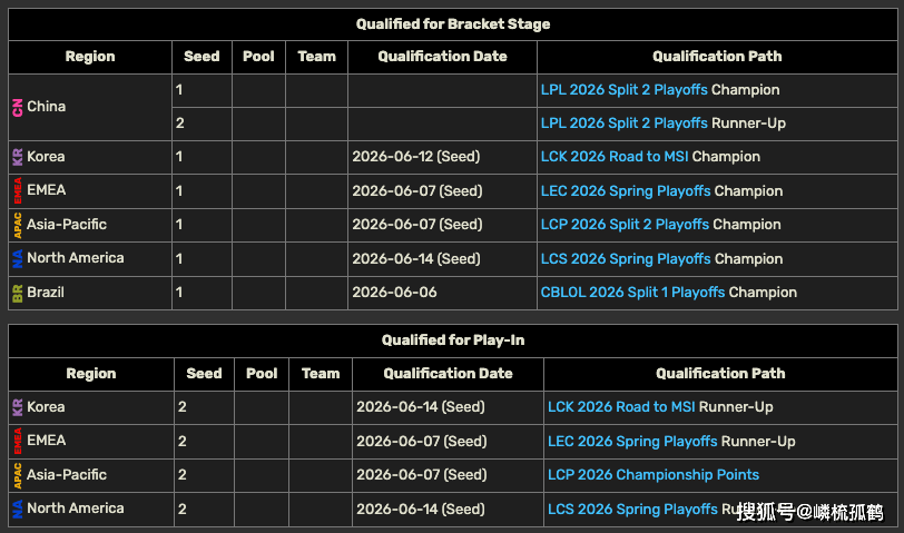 参赛的队伍组成上,直接晋级淘汰赛阶段的有7支队伍,分别是LPL、LCK、LEC、LCS、LCP,CBLOL的1号种子,以及先锋赛冠军所在赛区的2号种子。因为BLG夺冠的关系,这也意味着LPL赛区的二号种子将直通淘汰赛。