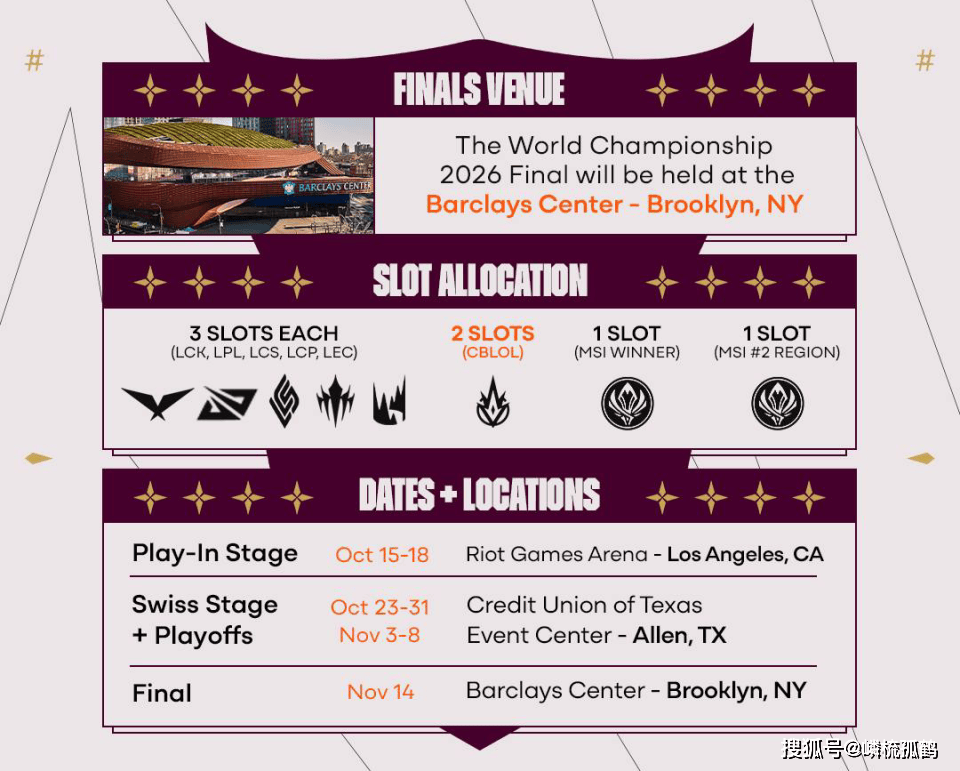2026年的全球总决赛将于 10 月 15 日拉开帷幕,并于 11 月 14 日结束: