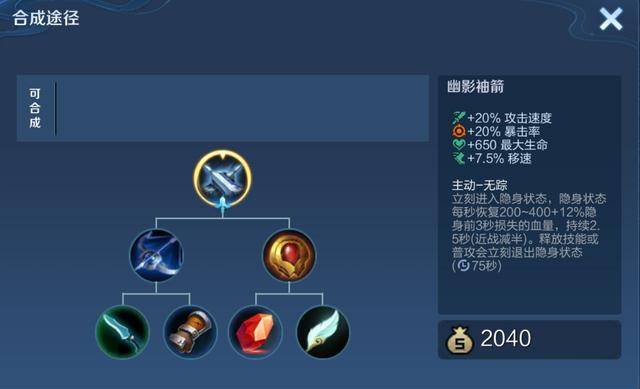 解析:从属性上来看,这件装备是为射手或远程物理刺客准备的,可用于保命或调整站位。而近战英雄只有1.25秒隐身时间,性价比并不高。
