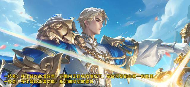 亚瑟加强:1技能新增强普可空放位移,且拖动普攻可指定朝向空放。