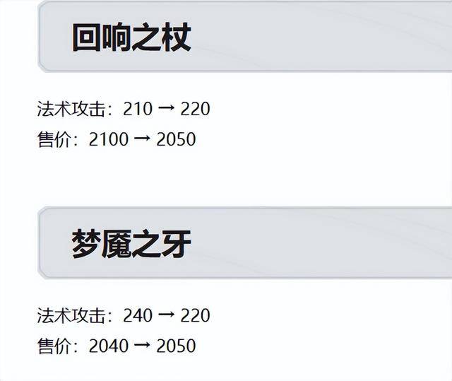 梦魇之牙削弱:法术攻击降低20点,价格增加10金币,性价比变低。