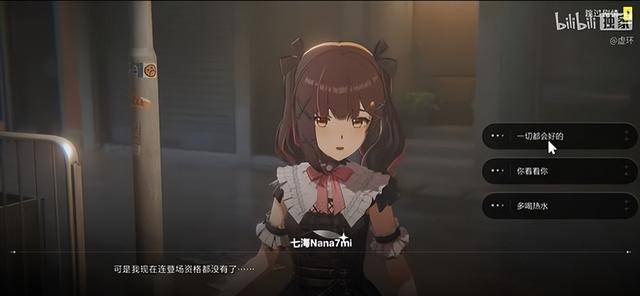 比如在大厅中有一个七海Nanami打游戏叹气的场景,过一会就大声的连叹几口气,像极了打游戏破防的兄弟。同时,游戏时不时就来一句紧接时事的梗,就和活人在吐槽一样。