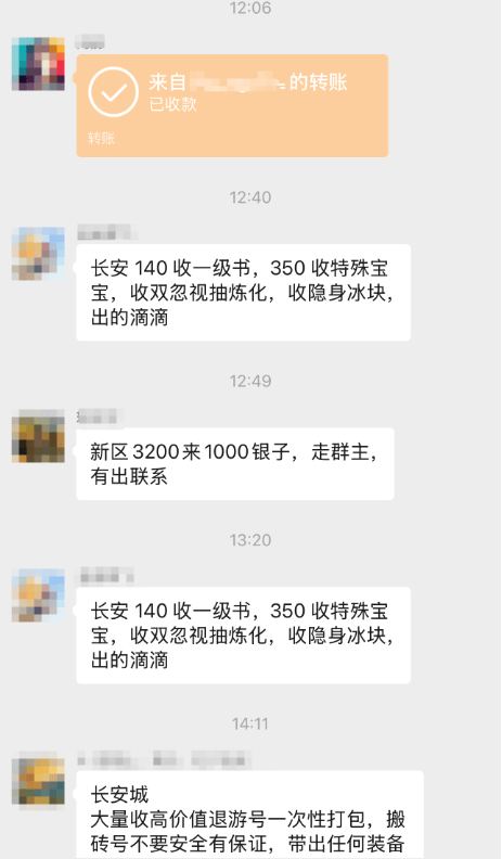 对于搬砖党来说,最核心的就是日常产出银两,然后银两再通过收银子的人,找担保的人/群,谈好价格之后去游戏内交易,这样就能实现银两→人民币的变现了。