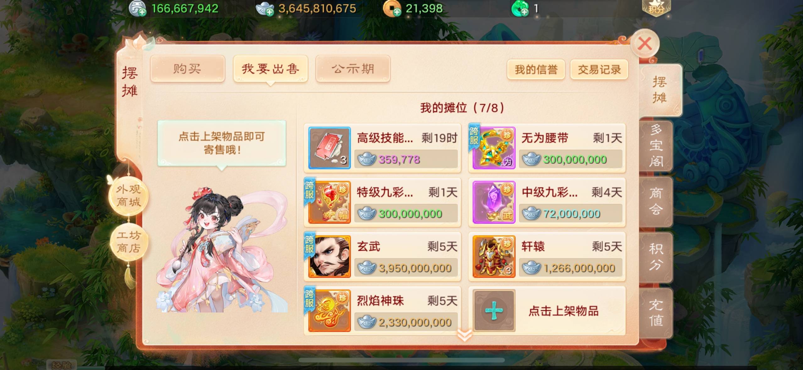 哈哈哈,一定要我说得这么直白吗?其实叶子猪已经强调过很多次了,大话手游交易服,所有银两和物资都可以交易,包括但不限于装备、宝宝、饰品、见闻、九彩、瑰宝、材料、天策符、坐骑等等,只有你能产出得到这些东西,都可以摆摊或者面对面交易出去。