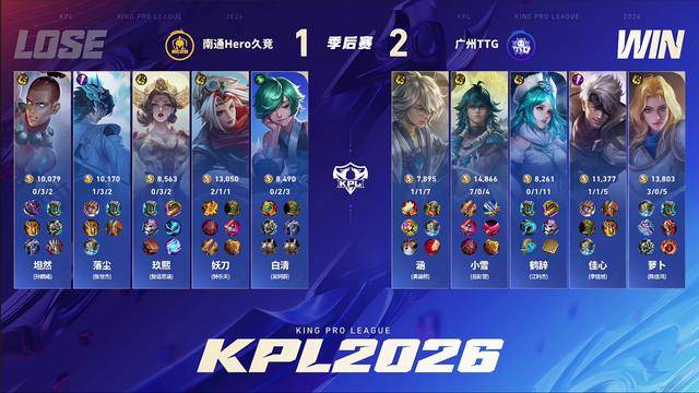 第一局hero失败的方式就比较离谱。本来是hero多人追着狂铁打,萝卜等来了队友之后,涵的鲁班大师闪现开大,但第一时间输出位跟不上。TTG已经准备撤了,妖刀的敖隐直接开大留人,武则天交出闪现,妖刀也交了个大闪,直接被武则天二技能击退了,虞姬一箭接武则天大招直接击杀敖隐。虞姬带着红buff追着廉颇杀,面对关羽贴脸也完成反杀,另一边落尘的云缨也倒,TTG一波拿下。