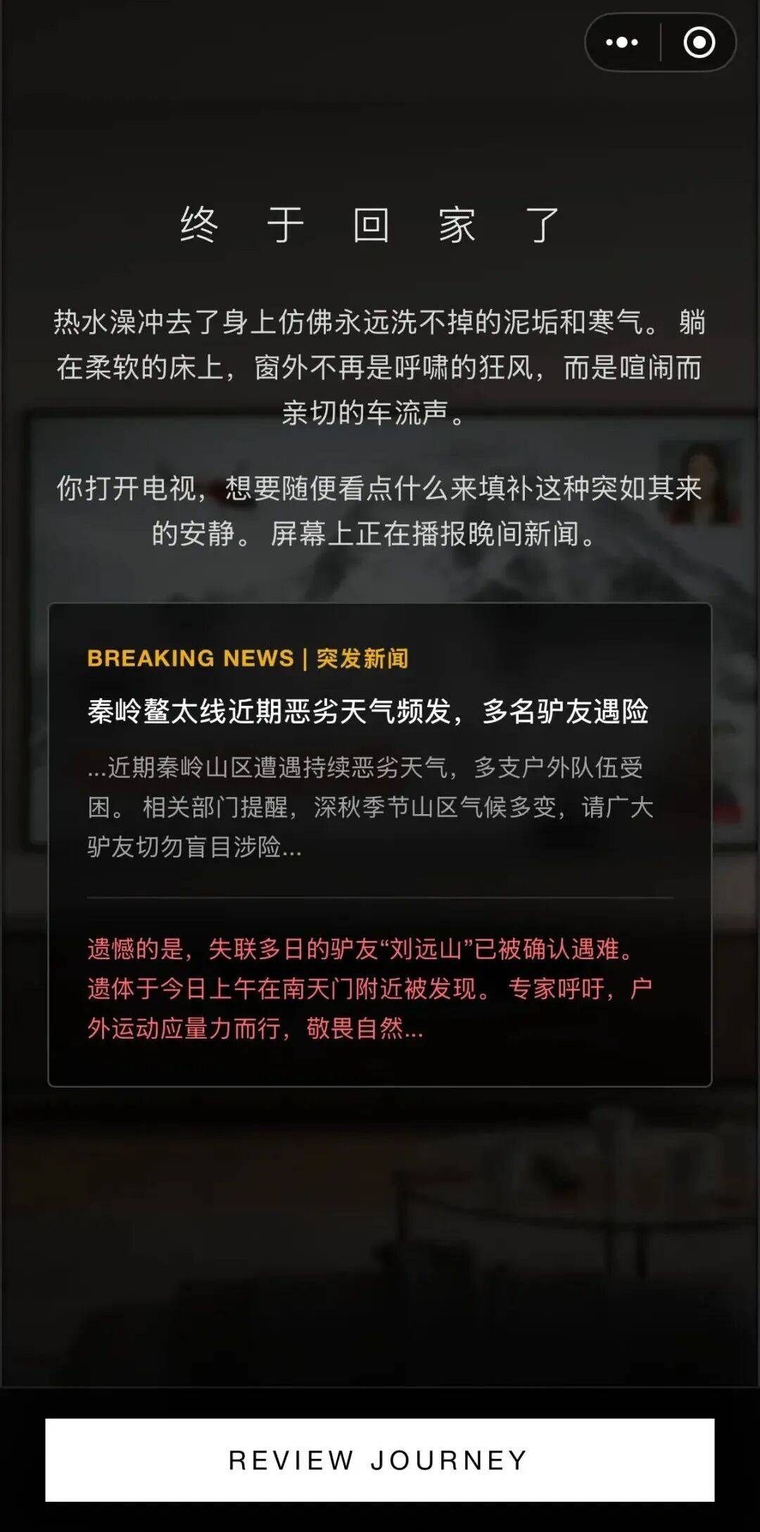很多玩家表示,即便没有高精度的建模渲染风雪,但看着屏幕上体温持续下降的数值警示,以及在南天门偶遇遇难驴友远山这类剧情选项,产生了很强的代入感。尤其是结局那句山只是暂时放过了你,这种敬畏自然的内核,通过文字精准击中了户外爱好者和泛人群的情绪