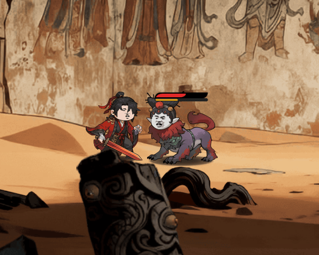 是一款仙侠微恐题材的闯关游戏,玩家主要操控一个沙雕表情包模样的主角在关卡内生存战斗。不过和《楚新钓》那种全方位的夸张包装相比,《小心有诡》并没有在沙雕这个方向上投入太大精力看不到太过复杂的面部表情变化和夸张演出,更多重心放在了中式恐怖元素的呈现,以及游戏本身的技能流派构筑与数值反馈上。